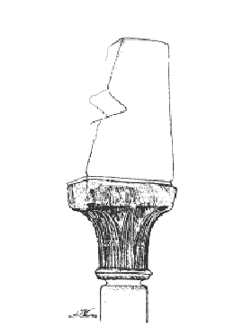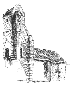 encorbellemenr sur des contre forts plats soigneuse ment appareillés et s'élève ensuite à une hauteur bien supérieure à cefle du toit primitif. Sa couverture, faite en batière selon une habitude normande, est encadrée par deux pigeons regardant l'est et l'ouest.