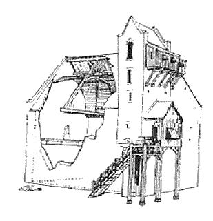 Heureusement, de nombreux détails encore observable permettent de restituer avec beaucoup de préci sion l'état primitif de l'édifice. Faisons done un saut dans le temps pour évoquer la belle silhouette du logis prioral du Brégain. tel qu'il se présentait il y a six siècles.
